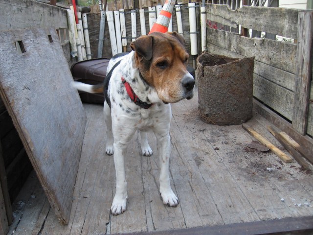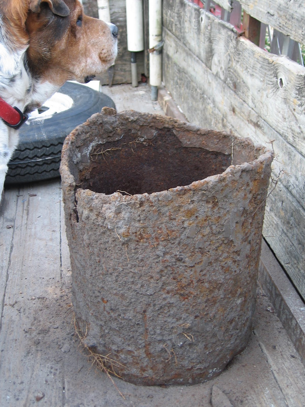 Boxer enjoyed jumping up into the trailer and sniffing around a bit. You can see here a relic in the background – or what’s left of one. My dad likes to tell the story of my grandfather burying an old water heater one day when he grew somewhat impatient at having to wait for someone to haul it away…We knew it was in the yard – we just didn’t know where.