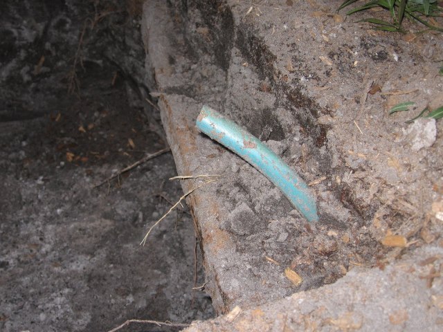 My grandfather also had an intricate matrix of hoses buried for use as his own homemade irrigation system. It would have made his forefathers proud. You see my grandfather was from Italy and probably learned a thing or two from his ancestors…builders of some of the worlds first aqueducts system…You can see (below) one of those magnificent yet ultra simplistic matrix exposed below (green hose). You know, there’s just no telling what you might find when you start digging in your yard. I was hoping we’d find some buried treasure but nothing so far. We’ll keep you posted.