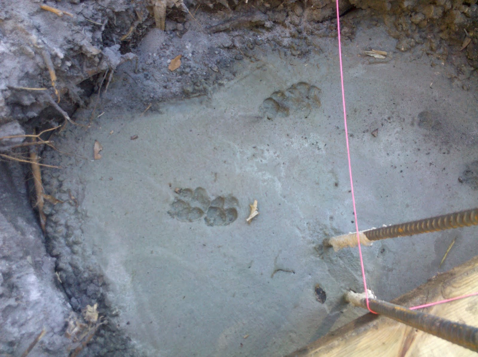 Peanut stepped in the hole at lunchtime and left her prints. Mr Contractor assured us it was not a problem – he was there at lunch when she did it. Not sure what if any work will be done tomorrow – I’m reckoning that the concrete needs to dry a little before more is done. But if there is more work done – you know that I’ll report it here first.
