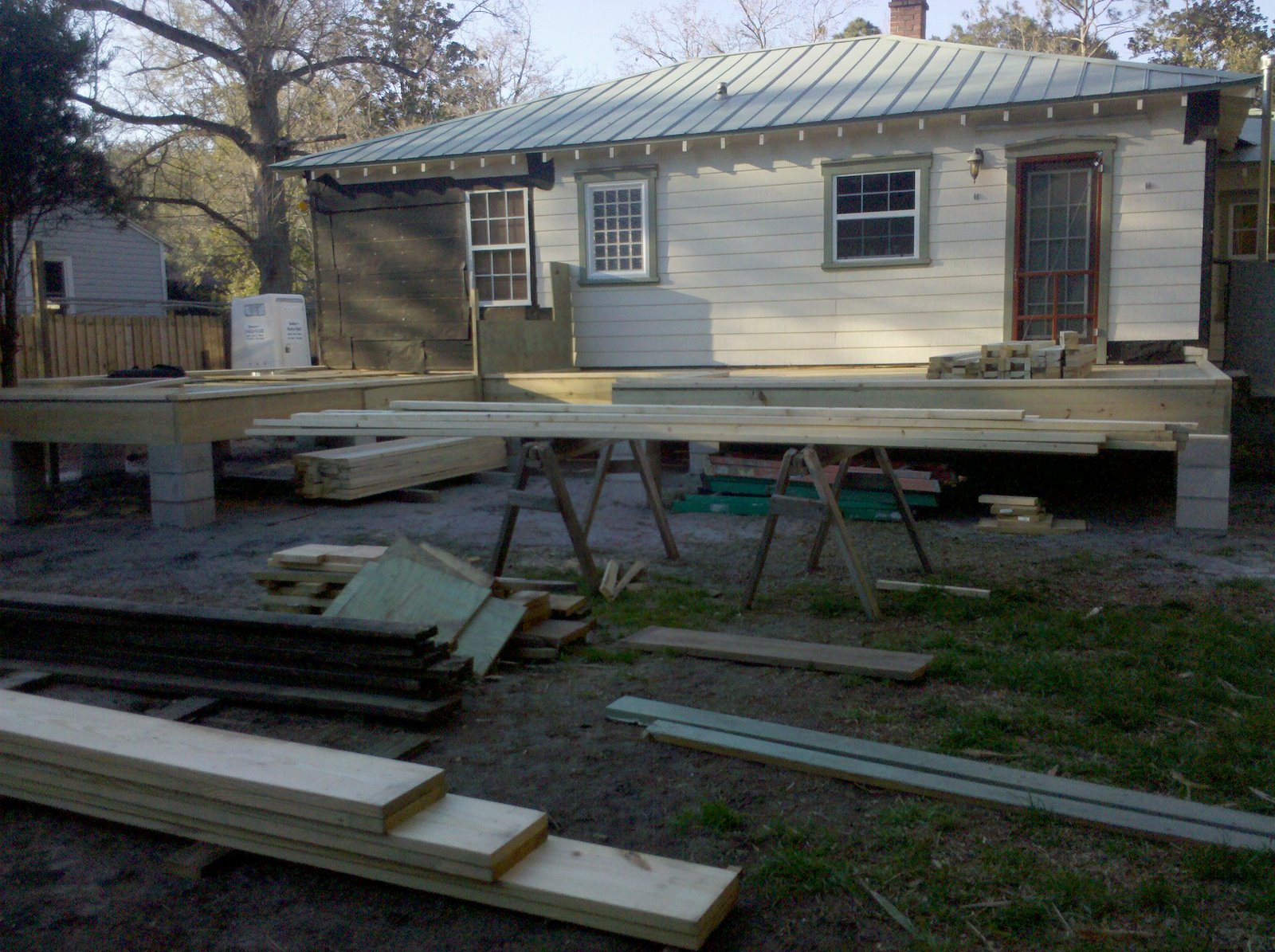 We discussed the location of the washer/dryer with Mr. Contractor today. It’s currently in the garage and we want to move it to the house. We had thought we were going to hijack a closet inside and put stacked units in there. But on further discussion we will have a “closet” built on the porch that will house the units.