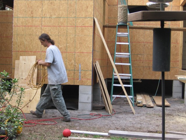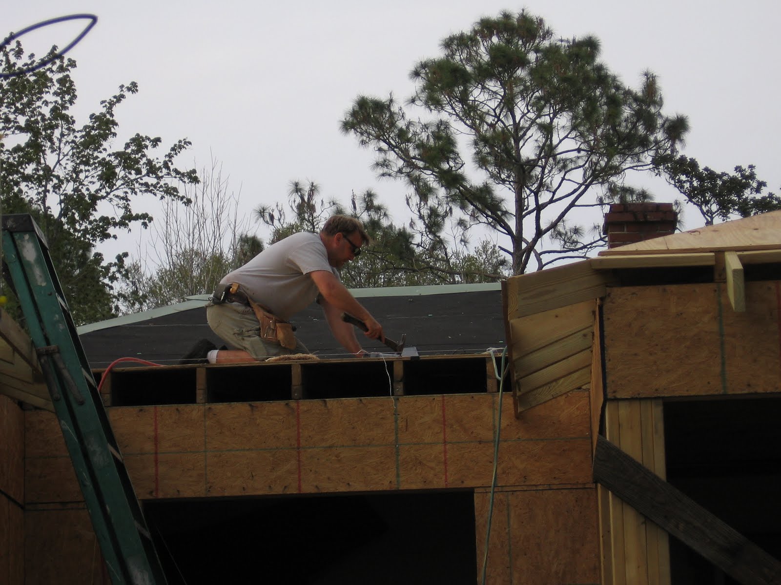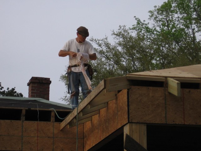 Doug working hard on the roof – didn’t seem scared at all up there.