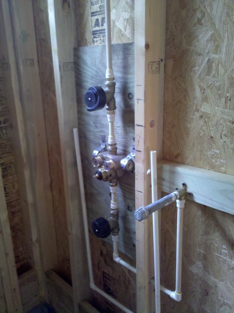 Lest we forget – the plumber has been here most of the week. What you see will one day be hidden, but for now we can admire the plumber’s handy work in the shower.