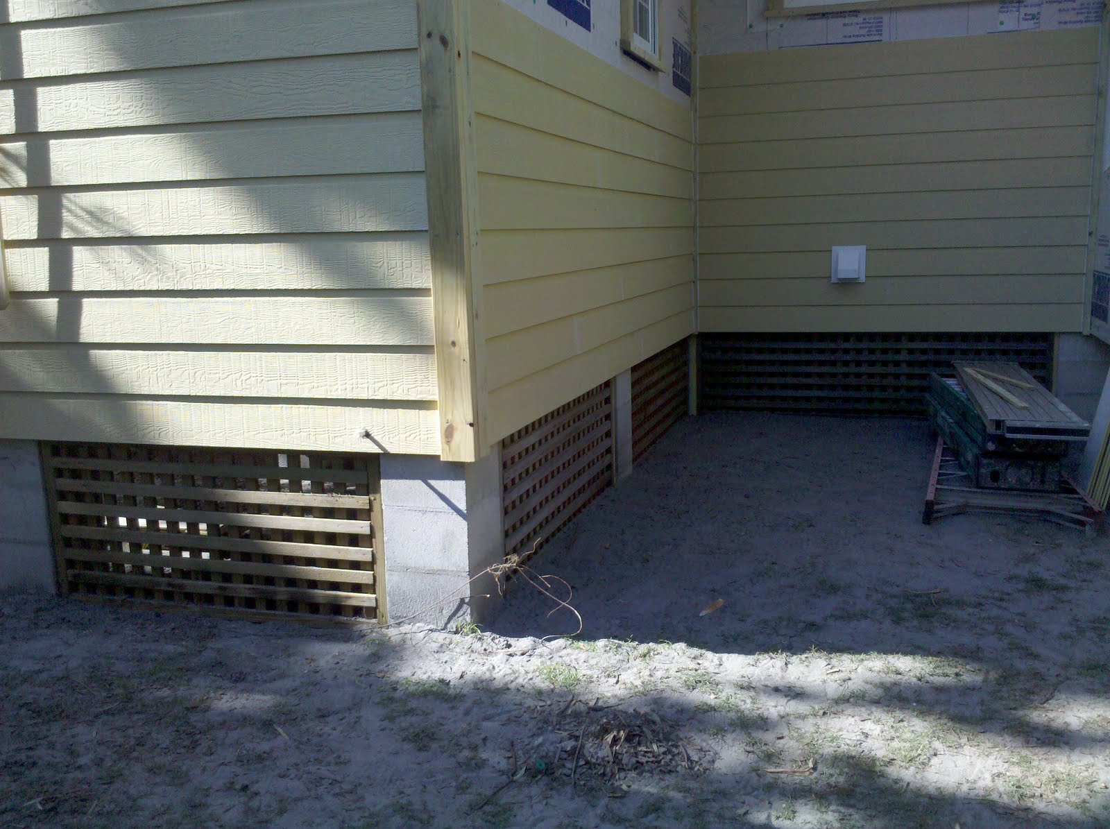 So…Doug’s been very busy. It might be hard to see from this picture but the windows are trimmed and more siding is up. Not bad, not bad at all.
