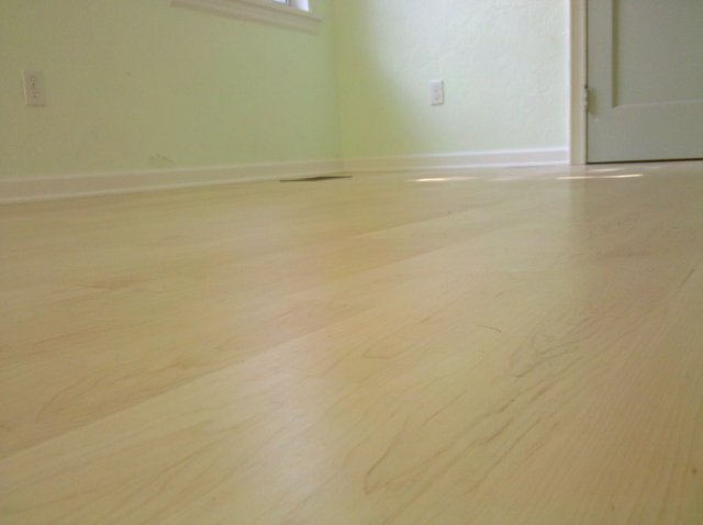 A ground’s eye view of our new floor in the bedroom. The porch floor probably won’t be installed for a while since it’s mostly used as a staging area right now.
