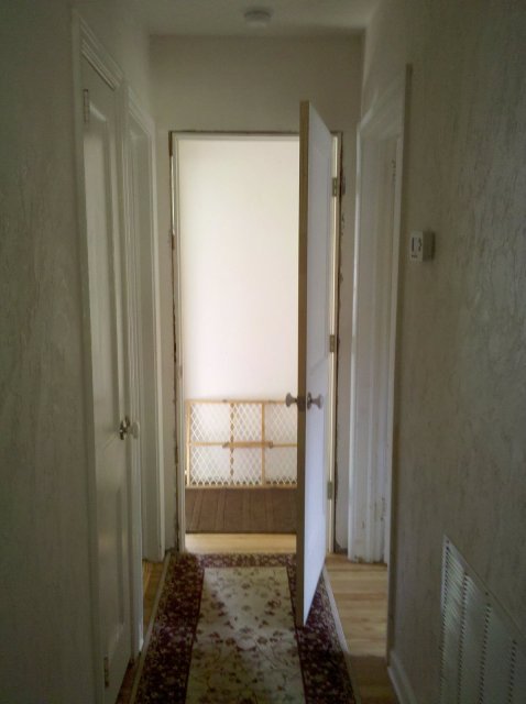 This is a new door way as it appeared when it was first framed. And below is the hallway wall – you can see the plaster cracks and such. Note to would be painters: This is what happens when you have latex paint on top of a layer of oil based paint. It won’t stick without applying primer (painting 101). Not to belie the point, but you can chalk this one up to the previous contractor.