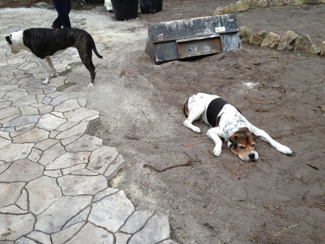 Boxer is tired and taking a break. Will be nice when the dirt is covered – tired of cleaning up tracked in dirt.