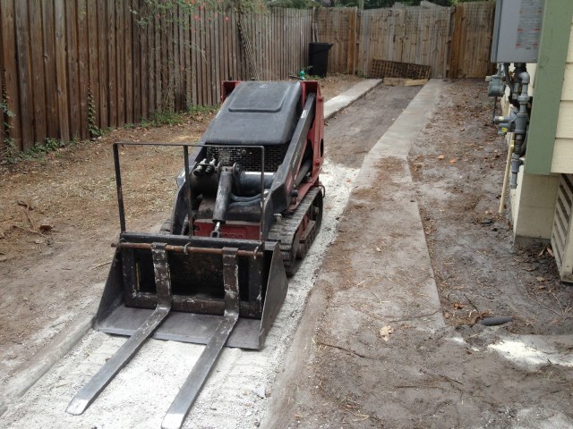 This is a neat little machine that has been all over our yard. Here it is being used to dig out part of our driveway in preparation for a facelift.