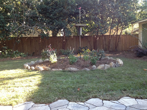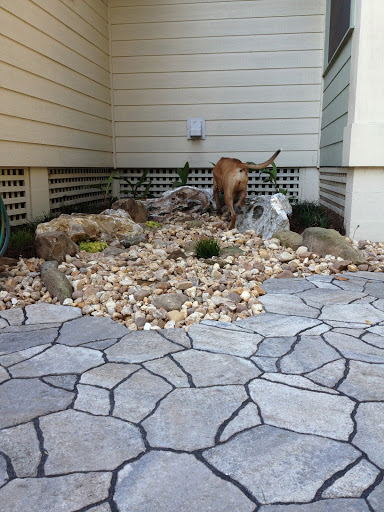 Here is our new “river bed” in the back. This is where 3 sides of our roof join to create a waterfall when it rains. Now we have our own creek bed.