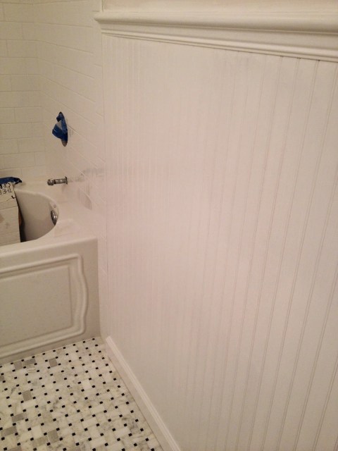 Bead board installation is complete…primer and first coat of paint in place. The walls still need their paint – will choose final color soon. All is coming together nicely.