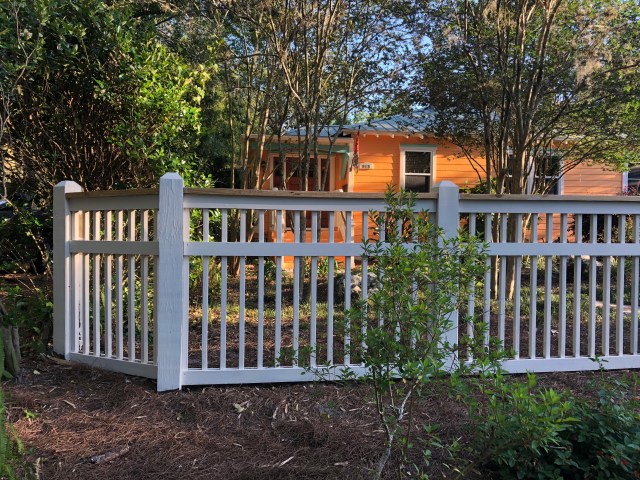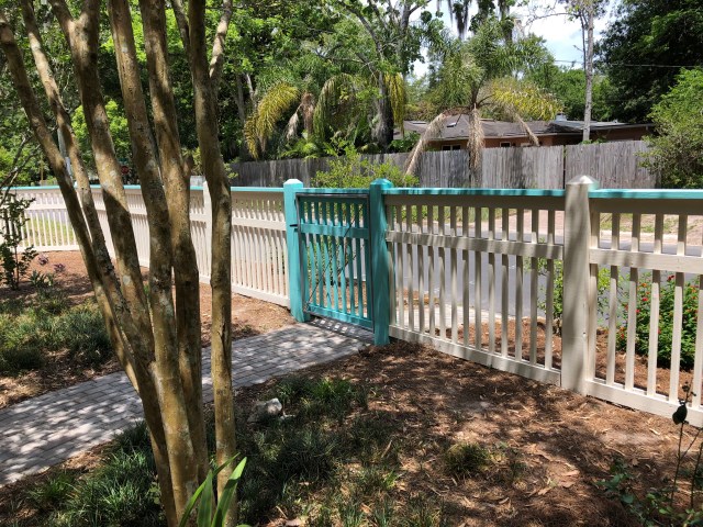 We were advised to use stain instead of paint on the fence. We found some stain that allows colorization – yipee!