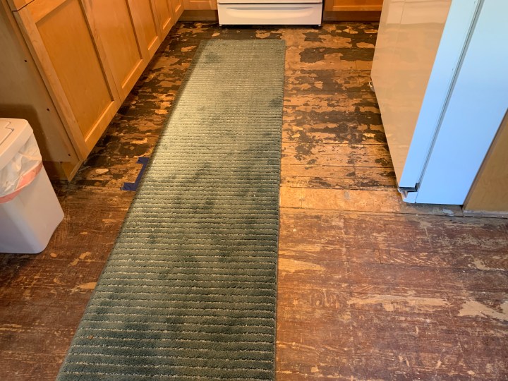 We determined a while ago that the tile floor needed to go. It’s cracked in places and lifting up from the floor in other places. We went ’round and ’round trying to decide what to replace it with. Should we go with new tile or something else?