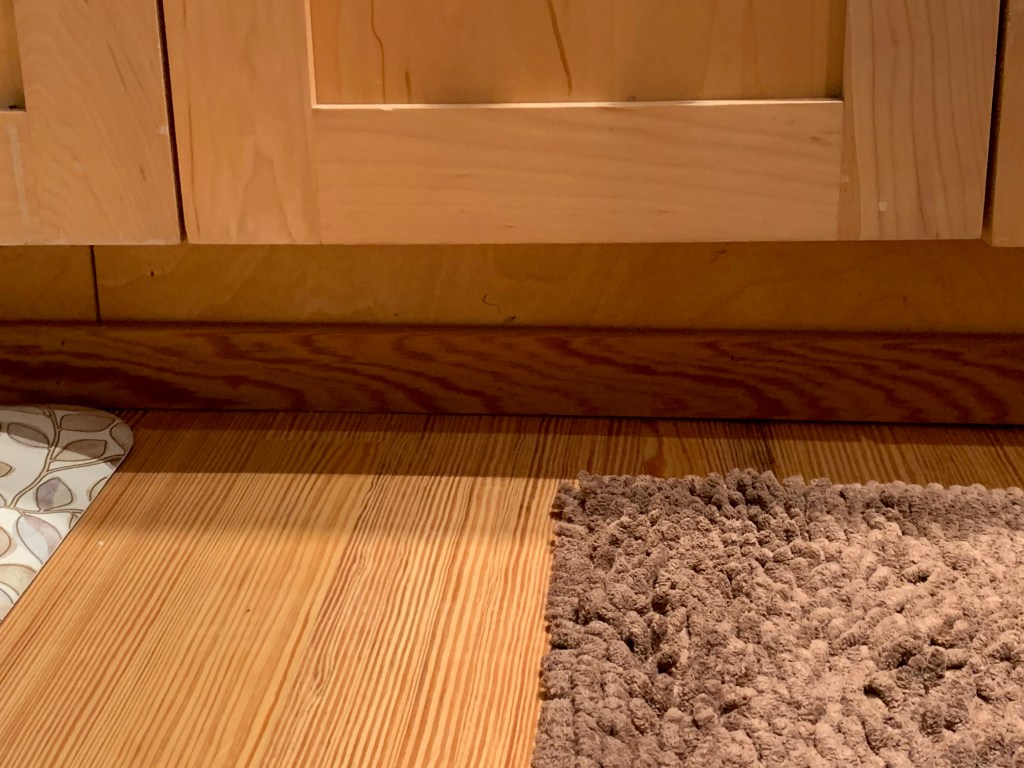 The toe kicks in the kitchen are in. The door and trim repairs have been completed. A couple of those still need us to paint but the carpentry work is done.